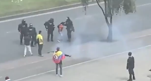 Como verán en las imágenes que también vamos a compartir a continuación, se evidencia claramente cómo no fue la Policía Nacional a través del Esmad, como lo han sugerido distintas personas a través de redes sociales la que causó la lesión de esta persona. Por el contrario, fue un objeto contundente lanzado con el propósito de agredir a los agentes del Escuadrón Móvil Antidisturbios, que lamentablemente termina impactando a este funcionario. Fue el mismo Esmad el que pidió la presencia urgente de un enfermero para brindar atención oportuna al gestor de convivencia una vez ocurridos los hechos, como también se evidencia en las imágenes.
