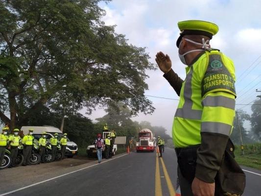 Sin embargo, la Policía Nacional continúa en su trabajo de habilitar las vías para facilitar el paso de alimentos, insumos médicos y otros elementos vitales para los ciudadanos... Esta es la vía Garzón- Neiva en el kilómetro 93, a la altura del municipio de Campoalegre, sector Sardinata.