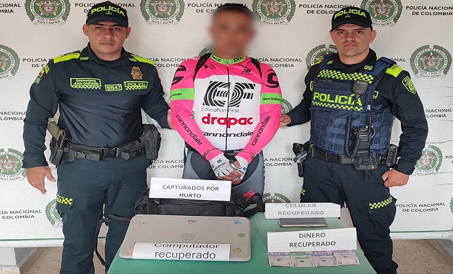 Dentro de estos resultados se destaca el operativo realizado en la autopista norte, vereda El Paraíso, donde la patrulla de vigilancia interceptó y capturó a un hombre de 33 años de edad que se movilizaba en una bicicleta, quien momentos antes le habría hurtado a una transeúnte su morral con varios elementos de valor. El capturado fue puesto a disposición de la Fiscalía General de la Nación por hurto.