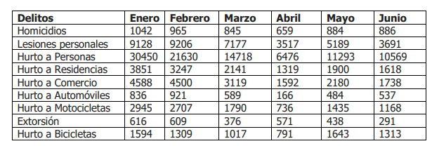 - Colombia desde enero, registra una tendencia sostenida de reducción del delito, alrededor del 33%.
