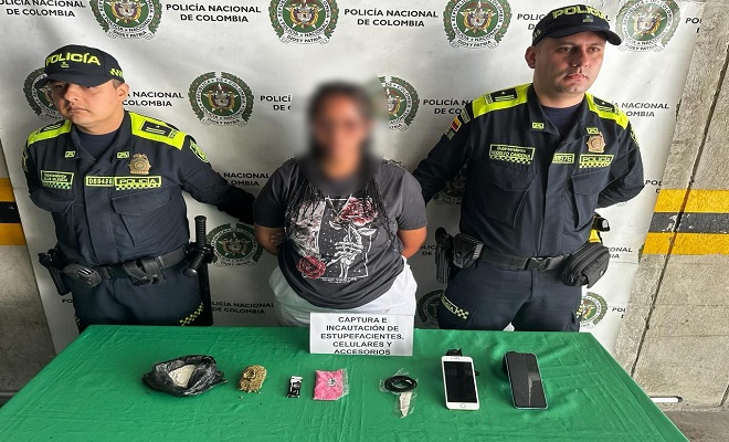 Esta mujer, era la encargada de servir los alimentos para las personas y, aprovechando su cargo, pretendía ingresar los siguientes elementos dentro de las celdas: 220 gramos de base de coca, 30 gramos de marihuana, 40 gramos 2CB y 2 equipos móviles.