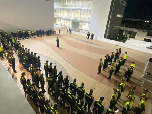 En materia de seguridad, hay un refuerzo en 43 municipios del país, declarados como prioritarios por riesgos de afectación al normal ejercicio de las votaciones. Así mismo, la Fuerza Pública y las autoridades competentes atenderán oportunamente las denuncias ciudadanas frente a los delitos electorales a través de la línea URIEL marcando #623, tales como perturbación del certamen democrático, constreñimiento al sufragante, fraude al elector, fraude en la inscripción de cédulas y elección ilícita de candidatos, tráfico de votos, voto fraudulento, mora en la entrega de documentos relacionados con una votación, alteración de resultados electorales; ocultamiento, retención y posesión ilícita de cédula y financiación de campañas electorales con fuentes prohibidas, entre otros, que contemplan penas de prisión y el pago de multas. La Policía Nacional también prestará vigilancia las 24 horas a las distintas sedes de la Registraduría, los centros de cómputo, las comisiones escrutadoras y, previa solicitud, a sedes políticas; dinamizará el ingreso y la salida de los electores y funcionarios a los puestos de votación y controlará el cumplimiento de las prohibiciones de propaganda política. Otra de las misiones trascendentales se centró en la custodia, desplazamiento y entrega del material electoral (119.875 kits) y equipos de digitalización y de biometría que se utilizarán, actividad que está a cargo de la Dirección de Tránsito y Transporte de la Institución. A través del Puesto de Mando Unificado (PMU), instalado en la sala estratégica de la Policía Nacional, al que asistirán también delegados de las distintas entidades involucradas en el proceso electoral se estarán verificando las novedades.