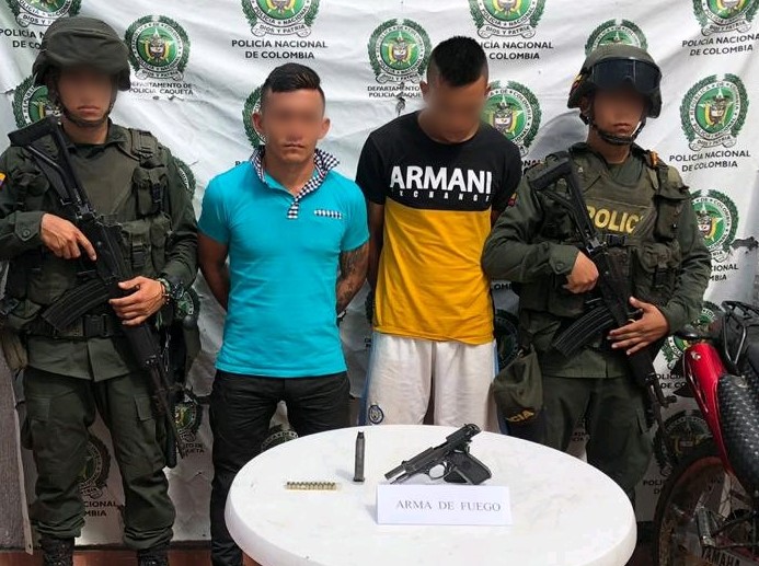 El resultado operativo se dio cuando los uniformados realizaban labores de patrullaje por el barrio Camilo Torres del municipio de Cartagena del Chaira y le realizaron la señal de pare a dos hombres que se movilizaban en una motocicleta, la cual no acataron y se produjo una persecución en la que fueron detenidos y al realizar el registro personal se le halló al parrillero un arma de fuego ilegal tipo pistola con el cargador y 14 cartuchos.