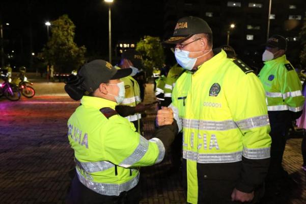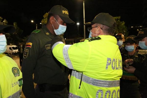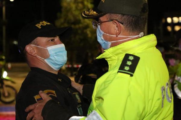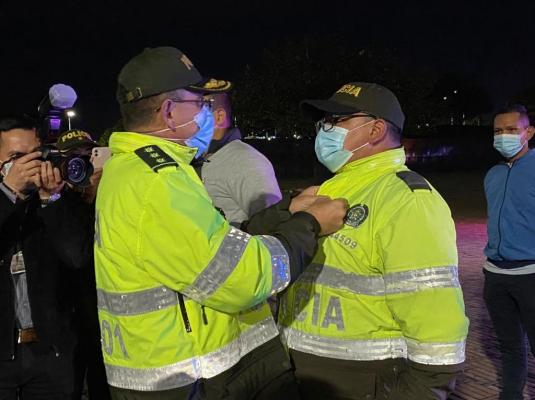 El Director General de la Policía Nacional, general Jorge Luis Vargas, junto al comandante de la Policía Metropolitana de Bogotá, general Eliécer Camacho, condecoró a los policías que estuvieron a punto de ser quemados vivos dentro del CAI Aurora, en el sur de Bogotá.
