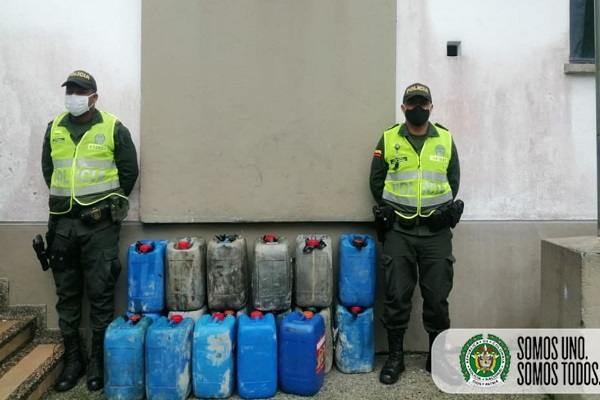En el marco del plan “Navidad Prospera y Segura” la Policía Nacional en el barrio Santander del municipio de Unión Panamericana, realizó la incautación de 95 galones de hidrocarburo ‘Gasolina’ corriente los cuales eran transportado de manera ilegal y los cuales tenían como destino la minería ilegal