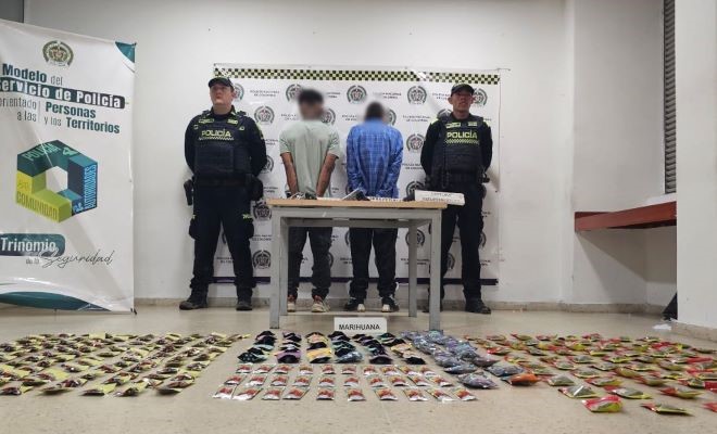 La Policía Nacional Metropolitana de Pereira, mediante labores de registro y control, logró la captura de dos sujetos en el barrio Travesuras, en un sector conocido como la Churria.