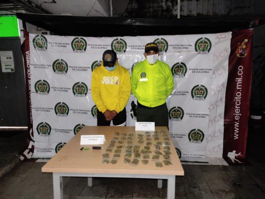 Como resultado de esta diligencia, se logró materializar la captura de un hombre de 22 años de edad, a quien se le halló en su poder 298.4 gramos de marihuana tipo creepy, 50 bolsas herméticas, dos pipas y una trilladora, elementos que eran utilizados para la dosificación y comercialización de esta sustancia ilegal.