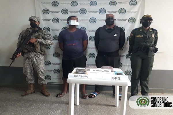 Las capturas se realizaron en inmediaciones del antiguo concejo municipal, 02 hombres de 35 y 40 años, minutos antes habían desembarcado de una lancha, y al ser abordados por las patrullas del cuadrante para un registro corporal y solicitud de antecedentes, le hallaron 03 paquetes con sustancias estupefacientes así: 01 paquete de clorhidrato de cocaína, con un peso aproximado de 1.000 gramos y 02 paquetes de marihuana de 600 gramos y un GPS.