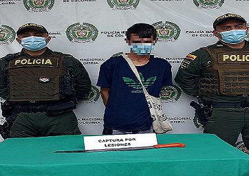 En desarrollo de actividades de prevención y control en el Barrio Cántaro del municipio de La Tebaida, integrantes de la Policía Nacional realizan la captura de un hombre de 25 años de edad por el delito de lesiones personales.
