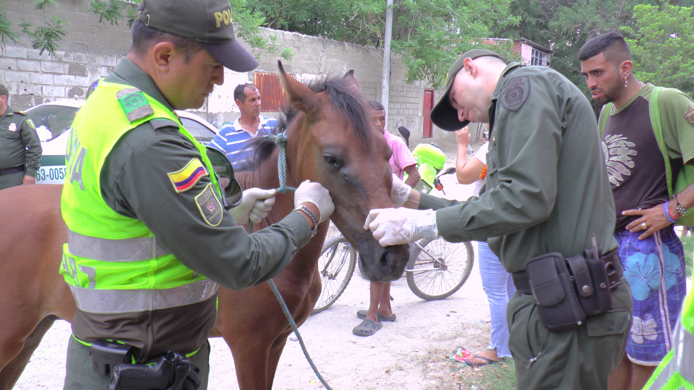 La Policía Nacional a través de uniformados a la Estación Rodadero y de la Seccional de Carabineros y Guías Caninos de la Metropolitana de Santa Marta, llevaron a cabo el rescate y salvación de un equino (caballo), el cual fue dejado abandonado por personas inescrupulosas en deplorables condiciones de salud en un lote enmontado en el sector del corregimiento de Gaira, con múltiples heridas infectadas y golpes en el cuerpo.