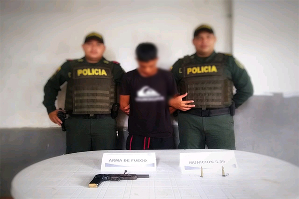 • En el municipio de Rio Viejo en el Sur de Bolívar, fue capturado un sujeto por el delito de porte ilegal de armas de fuego, momentos en que se desarrollaban planes de control en compañía de la infantería de marina. Al capturado se le hallo en su poder un arma de fuego tipo pistola calibre 7.65 con 01 proveedor puesto y (08) cartuchos.