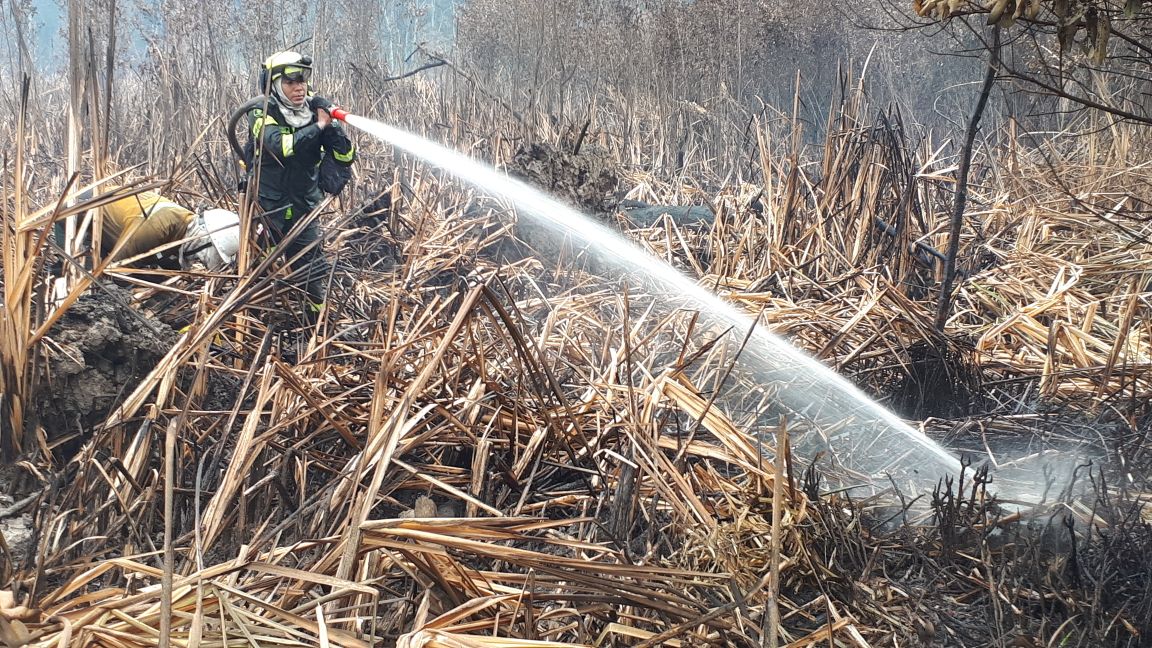 Un grupo de 25 hombres pertenecientes a la Policía de Operaciones Especiales en Emergencias y Desastres “Ponalsar” vienen apoyando desde el pasado miércoles un incendio de gran magnitud que se presenta en el sector Las Albercas, en la vía Parque Isla Salamanca.