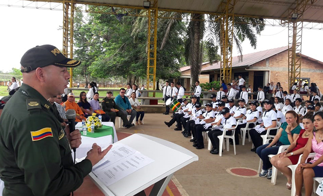 En un centro educativo del municipio de Puerto Rico, el Departamento de Policía Meta, graduó a 17 niños y niñas que ingresaron al programa “Cívica Infantil y Juvenil”, liderado por el grupo de Prevención y Educación Ciudadana, para la protección integral de la infancia y adolescencia a partir de su formación en valores humanos para convertirnos en ciudadanos que propendan por el apoyo y la construcción de la convivencia ciudadana.