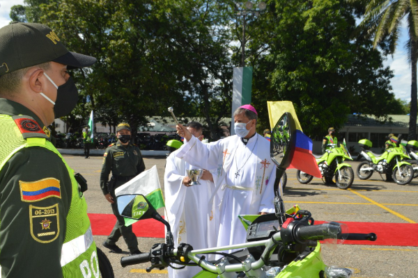 Con la presencia del señor brigadier general Ramiro Alberto Riveros Arévalo, comandante de región de policía numero 2 sur oriental, el señor coronel Diego Fernando Vásquez Argüello, comandante policía metropolitana de Neiva, doctor Faiver Hoyos Hernández, secretario de gobierno municipal, la doctora Luisa Fernanda Robles, directora de convivencia y seguridad ciudadana y Monseñor Froylan Casas Ortiz, la administración municipal hizo entrega de un importante parque automotor, el cual consta de 28 motocicletas marca honda xre 300 modelo 2021 fueron entregadas por la Alcaldía de este municipio a la policía metropolitana para el servicio de todos los neivanos.