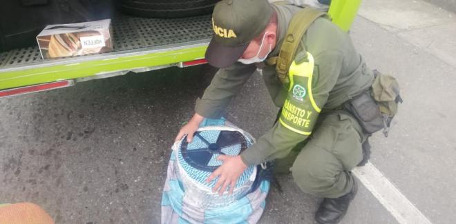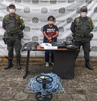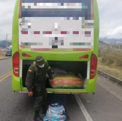 Los policías se encontraban en puesto de control, realizando registros a vehículos y solicitud de antecedentes a personas, cuando hacen la señal de pare a un bus de servicio público que, al verificar el interior de las bodegas de carga, encuentran un costal en el cual se haya un rollo de soga marina que ocultaba la droga. Por este hecho fue capturada la ciudadana como responsable de este equipaje de bodega, por el delito de fabricación, tráfico y porte de estupefacientes, siendo puesta junto a los narcóticos avaluados en $33.600.000 a disposición de la Fiscalía 56 Seccional Especializada de Bogotá.