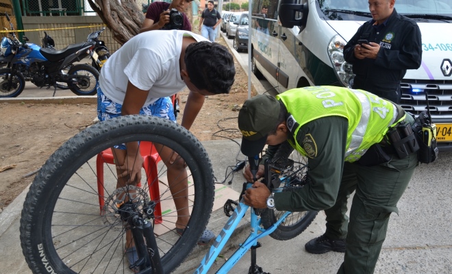 Por su parte, un funcionario adscrito a la Estación Valledupar, con equipo especializado, realiza la marcación de 60 motocicletas y 10 bicicletas, para lo cual se marcan las piezas que más se comercializan, con lo cual se busca prevenir el hurto y comercialización ilegal de las mismas; adicionalmente, un técnico profesional en automotores de la SIJIN, realiza la revisión de 30 automóviles, a fin de verificar su legalidad.