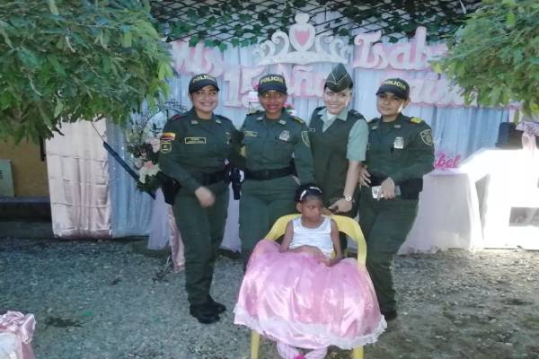 Desde artista que amenizaron con sus canciones, establecimientos comerciales que aportaron elementos bebidas y comestibles, gente de la comunidad que ayudó en la logística de la fiesta, y por su puesto la Policía de Urabá que engalanó el evento con los grupos de policía Cívica, Prevención y Educación Ciudadana y el grupo de Carabineros, quienes se encargaron de la calle de honor, de bailar el vals y hacer sentir a la protagonista de esta historia y sus familiares, como en un cuento de hada.