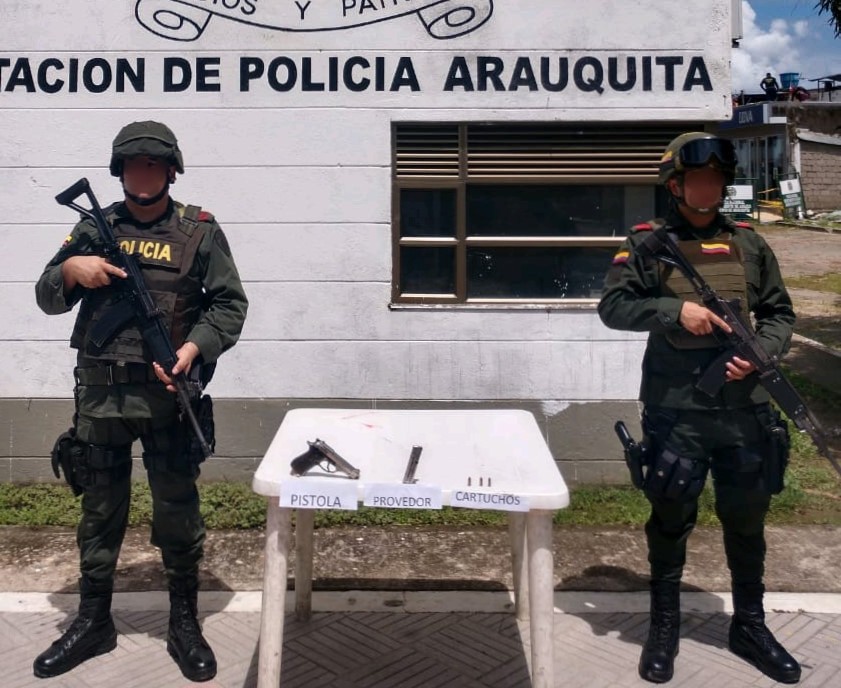 Por otra parte, en el municipio de Arauquita, unidades adscritas al Modelo Nacional de Vigilancia Comunitaria por Cuadrantes, en actividades de registro a establecimientos abiertos al público, hallaron un arma de fuego con un proveedor y tres cartuchos.