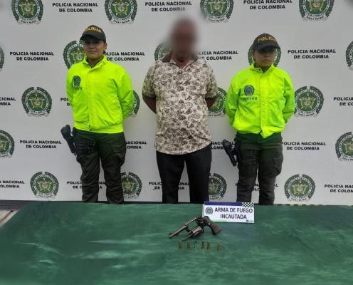 En consecuencia, la Policía desplegó sus capacidades a través de la Seccional de Investigación Criminal (SIJIN) y en articulación con la Fiscalía General de la Nación realizaron una diligencia de registro allanamiento a un inmueble logrando hallar un arma de fuego tipo revólver calibre 38.