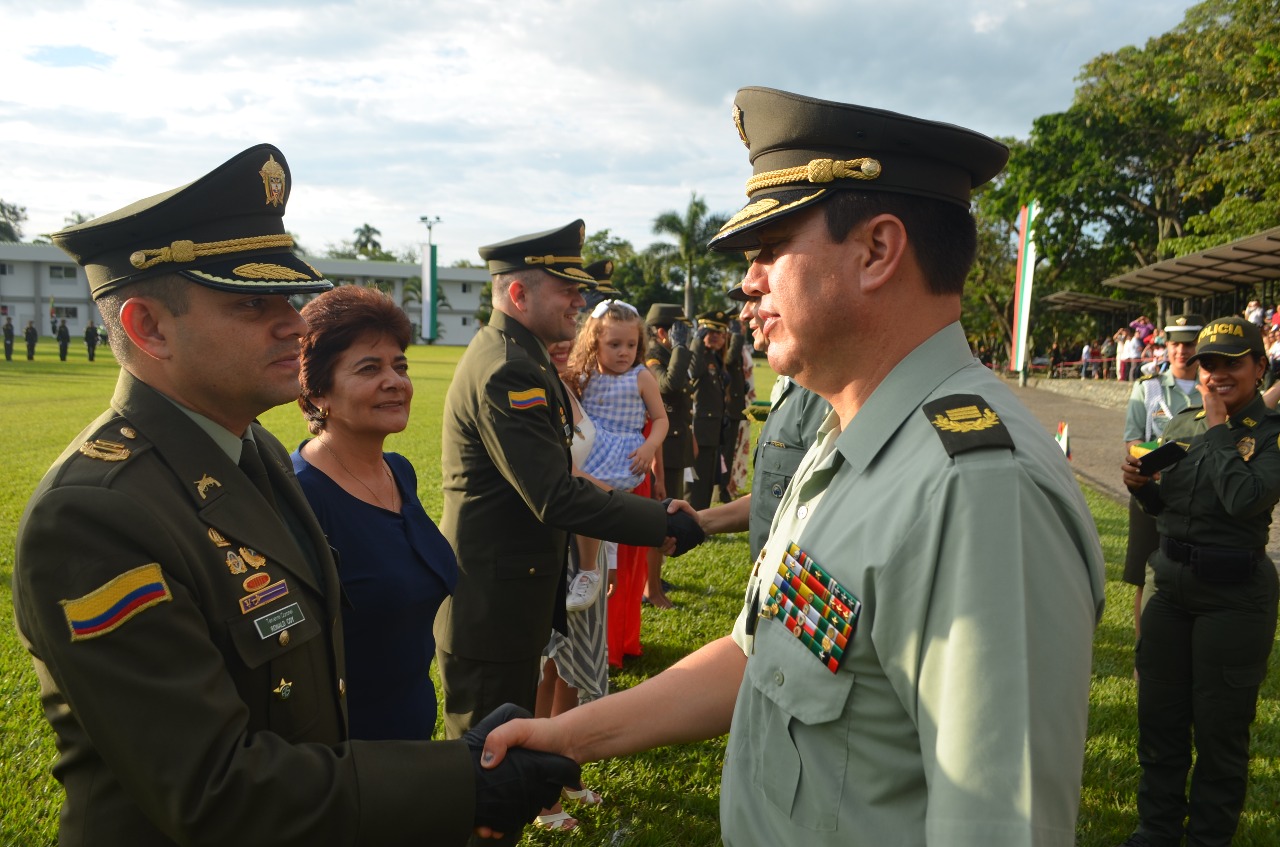 Como parte central el señor Brigadier General Hugo Casas Velásquez, impuso los grados que gobierno nacional confirió a 59 oficiales adscritos a la región de policía No.4, este nuevo grado significa un reconocimiento del mando al esfuerzo y sacrificio que siempre realizan con el único propósito de servir a la sociedad y contribuir con ello que los habitantes de nuestro país convivan en un ambiente de paz.