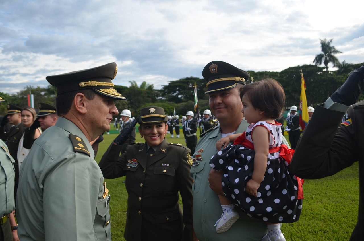 El campo de ceremonias de la Escuela de Policía Simón Bolívar, en Tuluá se convirtió en un lienzo para plasmar el logo del proceso de modernización y transformación institucional MTI, el cual busca una adaptabilidad a la transformación social y al pos conflicto, fortaleciendo  la confianza social, haciendo una policía más profesional y maximizando  la posición de liderazgo de la Institución, siendo este el marco perfecto para el ascenso de 59 señores oficiales a los grados de Teniente, Capitán, Mayor y Teniente Coronel.