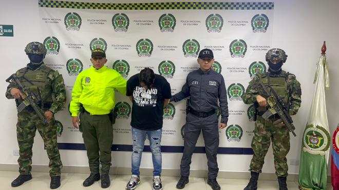El Departamento de Policía Valle, a través de un trabajo investigativo en coordinación con el Ejército Nacional y Fiscalía General de la Nación, en la ciudad de Armenia, logran la captura de alias ‘El Cantante’, mediante orden judicial, afectando así el grupo delincuencial organizado ‘Los Flacos’.