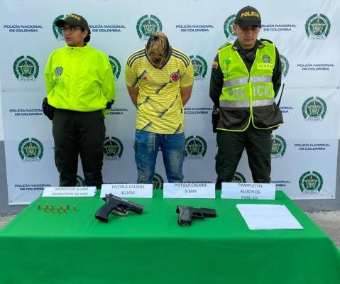 A alias ‘Alejandro’ y el adolescente se les halló en su poder dos armas de fuego tipo pistola, calibre 9 mm, dos proveedores, 23 cartuchos de diferentes calibres, 5 panfletos alusivos al GAO-r compañía ‘Adán Izquierdo’, 14 recibos de pago de este grupo armado, 01 hoja de papel cuaderno con la lista de personas y fincas perfiladas para la comisión del delito de extorsión, 01 celular gama media y 01 motocicleta, marca Suzuki DR 150, la cual le arrojo denuncia de hurto.