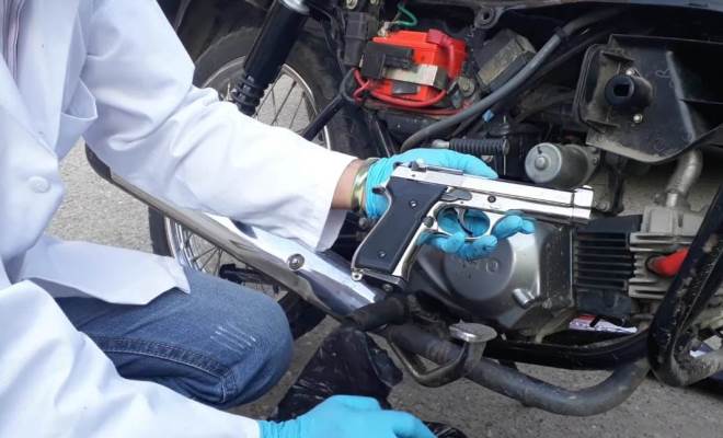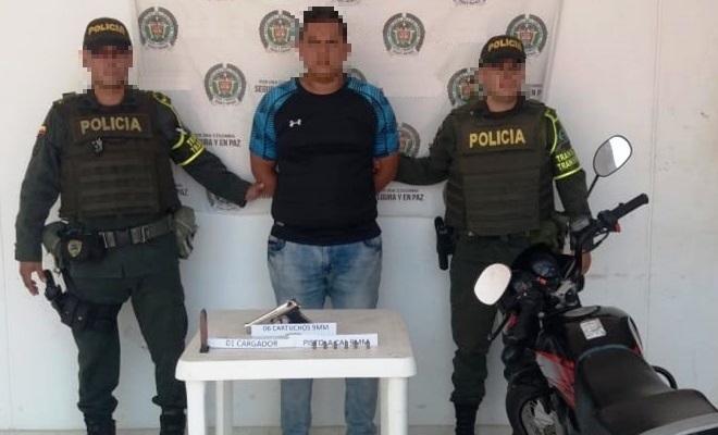 Con esta información se alertan a todas las unidades del departamento, dando inicio a la búsqueda y localización de los mismo, es así como en el kilómetro 32 vía San Roque – Bosconia jurisdicción del municipio de Chiriguaná, se logra ubicar la motocicleta, la cual era conducida por un hombre mayor de edad, al practicarle un registro minucioso se le halla en un compartimiento una arma de fuego tipo pistola, calibre 9 milímetros, marca Bruni, por tal motivo se materializa la captura del ciudadano.