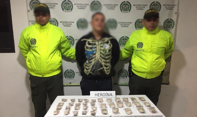 La acción operativa se llevó a cabo mediante la ejecución de una diligencia de allanamiento y registro a un bien inmueble ubicado en la calle 57 con carrera 16 del barrio San Diego del municipio de Dosquebradas, lugar en donde se logró la captura de un hombre de 26 años de edad, natural de esa municipalidad, a quien le fueron incautados 283 dosis de heroína listas para su distribución y comercialización.