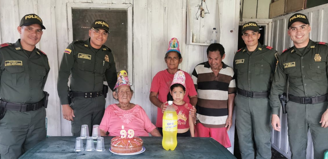 El personal de la Estación de Policía del Corregimiento Atacuari al mando del señor comandante de la estación, en un noble gesto de acercamiento a la comunidad, celebro los 99 años de edad a una ciudadana, natural de la región Amazónica, que junto a los familiares le partieron una torta, el día de sus cumpleaños, la familia muy emocionada vio con gran satisfacción el acto hecho por parte del personal policial.