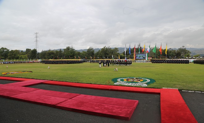 El ministro de Defensa Nacional Doctor Guillermo Botero Nieto y el director general de la Policía nacional general Oscar Atehortua Duque, presiden la ceremonia en la escuela “Gonzalo Jiménez de Quesada”, situada en Sibaté (Cund), donde 2390 uniformados recibirán el ascenso. Al acto asisten el cuerpo de generales, mandos de las fuerzas militares y familiares de los uniformados promovidos, entre otros invitados especiales.