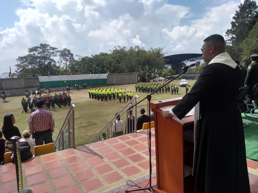 La ceremonia estuvo presidida por el señor Brigadier General Oscar Antonio Gómez Heredia, Comandante de Policía Región No. 6 en Compañía del señor Brigadier General Eliecer Camacho Jiménez, Comandante Policía Metropolitana del Valle de Aburrá, el señor coronel Giovanny Buitrago Beltrán, Comandante de Departamento Policía Antioquia, la señora teniente coronel Angélica Marina Díaz Gómez, Directora de la Escuela de Policía Carlos Eugenio Restrepo, el doctor Eugenio Prieto Soto, Director del Área Metropolitana y el doctor Ronald Alejandro Sánchez, Alcalde del Municipio de Betania, quienes acompañaron y participaron de la ceremonia, como muestra de reconocimiento al Talento Humano de la Policía Nacional, en especial para los hombres y mujeres policías que prestan su servicio en nuestra región.