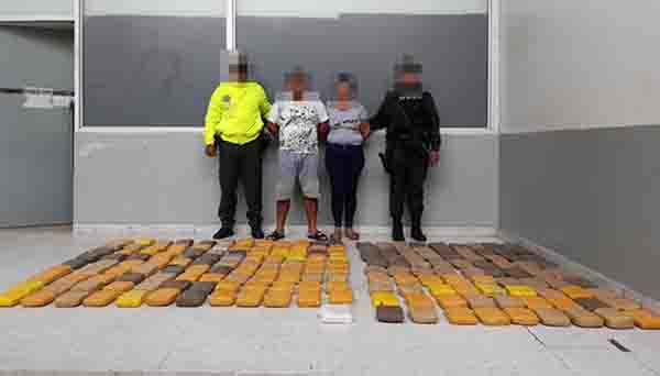 En las últimas horas, unidades de infancia y adolescencia en coordinación con la seccional de inteligencia Policial mediante solicitud de registro y allanamiento a un inmueble ubicado en la calle 81 con carrera 1c barrio Santa María, logró la captura de una pareja y la incautación de 95 kilos de marihuana y 01 kilo de base de coca, distribuidos en 95 mil dosis de marihuana y 1000 dosis de clorhidrato de cocaína