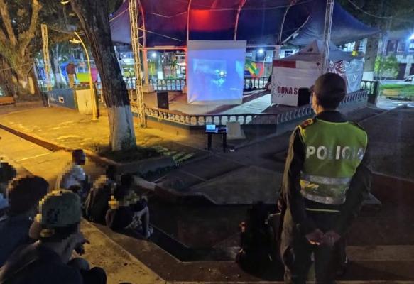 Continuando con las actividades de reconciliación en el marco de la campaña #ColombiaUnaRazón con el fin de alejar y prevenir a la niñez del delito y afianzar los lazos de amistad entre la comunidad, el Departamento de Policía Tolima a través del personal de prevención y educación ciudadana en compañía de uniformados del cuadrante de la estación de Policía Fresno y grupo de auxiliares de Policía de la mano con la Parroquia del municipio, vienen generando espacios de sana diversión e integración familiar a través de la jornada denominada "Cine al Parque" respetando los protocolos de bioseguridad y la utilización de elementos como el tapabocas para prevenir la propagación del COVID-19.