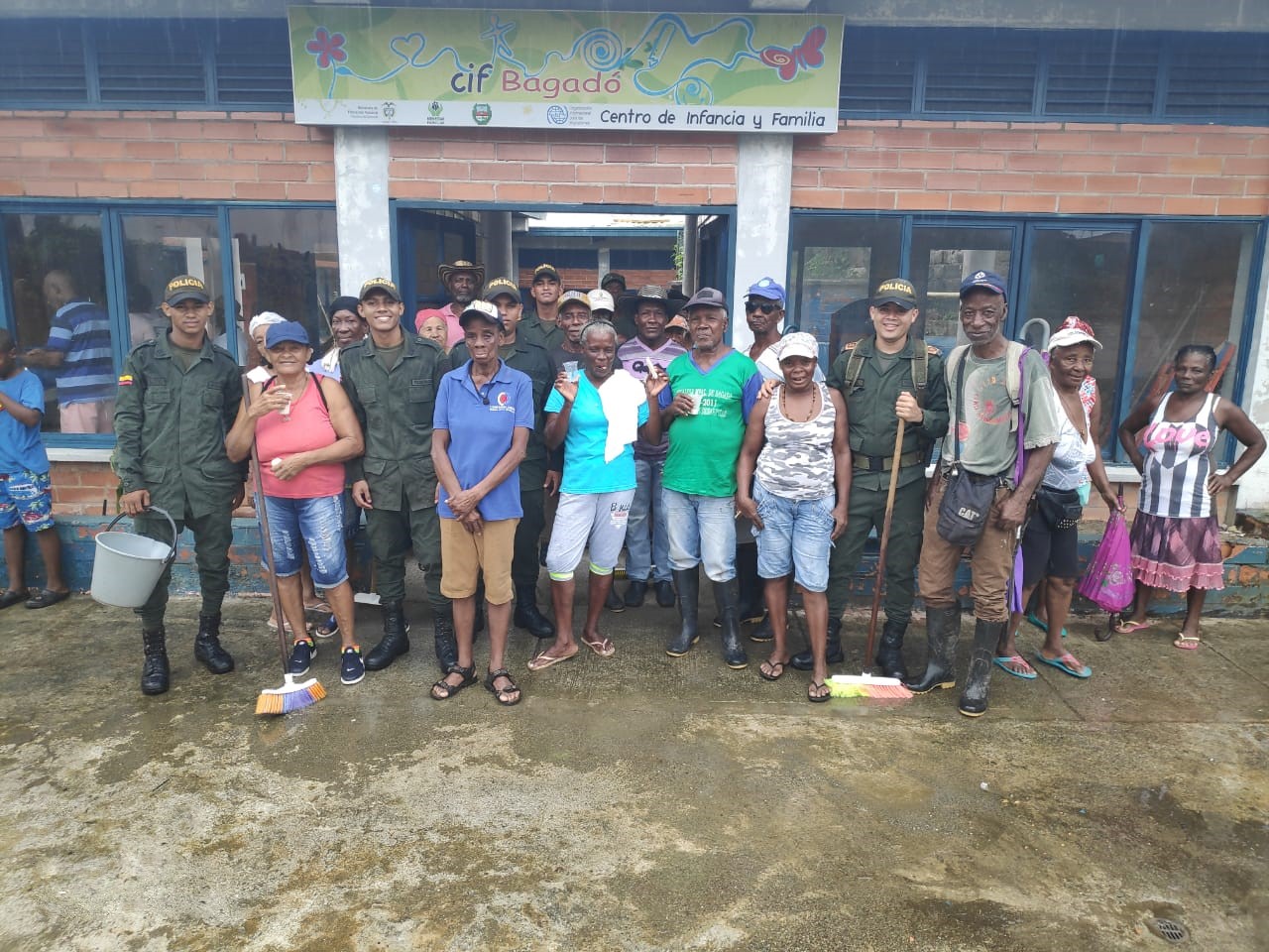 En desarrollo de la tercera fase del Plan de Choque, “Construyendo Seguridad” la Policía Nacional en el municipio de Bagadó en coordinación con la secretaria de integración social realizó una jornada de ornato, aseo y recuperación del centro de Infancia y familia, el cual se encontraba en estado de abandono y que fue destinado por el municipio para que los adultos mayores realicen sus actividades recreativas y deportivas.