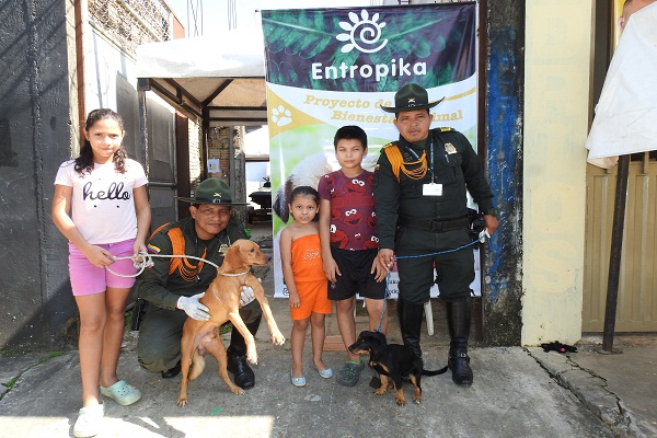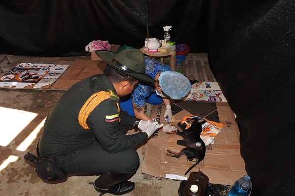 La Policía Nacional a través de sus especialidades de Policía Carabineros, con el apoyo de Auxiliares Bachilleres, apoyó la intensa jornada de esterilización y atención a macotas que lideró la Alcaldía Municipal y la Fundación Entropika de Leticia.