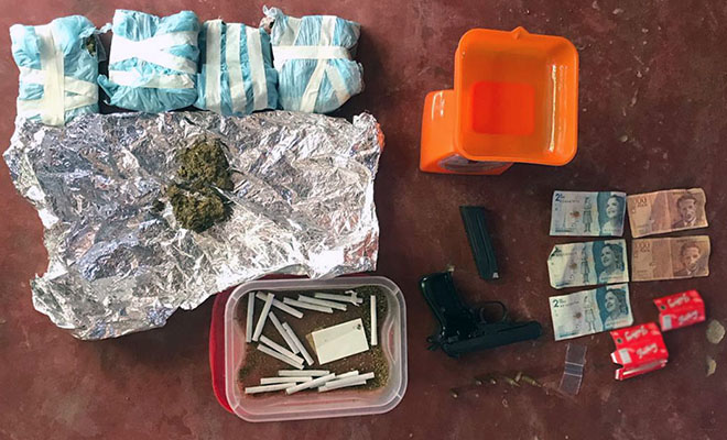 El caso liderado por nuestras unidades de Investigación Criminal en coordinación con la Fiscalía 18 Especializada Gaula, se registró en el barrio Ciudad Florida en jurisdicción del municipio de Granada, donde fue capturado el sujeto conocido en el mundo del crimen como ‘zorro’ de edad 24 años, durante una diligencia de registro y allanamiento realizada al inmueble donde también se incautaron 500 gramos de marihuana tipo creepy, una pistola calibre 7.65 milímetros, un proveedor, tres cartuchos calibre 9 milímetros y dos cartuchos calibre 5.56 milímetros.