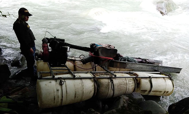 A estos individuos que se les sorprendió realizando explotación ilícita en el rio Lucia de la vereda El Naranjal en jurisdicción del municipio de Mesetas, sin los respectivos permisos para esta actividad, también se le incautó una draga artesanal a base de combustible.
