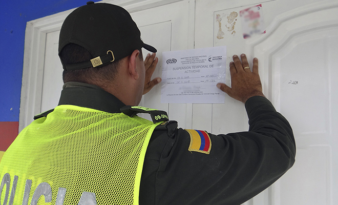 El Departamento de Policía Meta en el marco del Plan “Navidad Segura, más Cerca del Ciudadano”, realizó la incautación de 2.070 kilos de pólvora en cuatro establecimientos de los municipios de Granada, San Martín y Guamal, sin permisos de las alcaldías e infringiendo la Ley 1801 de 2016 (Código Nacional de Policía y Convivencia). De igual forma, se aplicó multa tipo 4 por un valor superior a los 800 mil pesos, suspensión temporal de la actividad por 10 días y destrucción del bien.