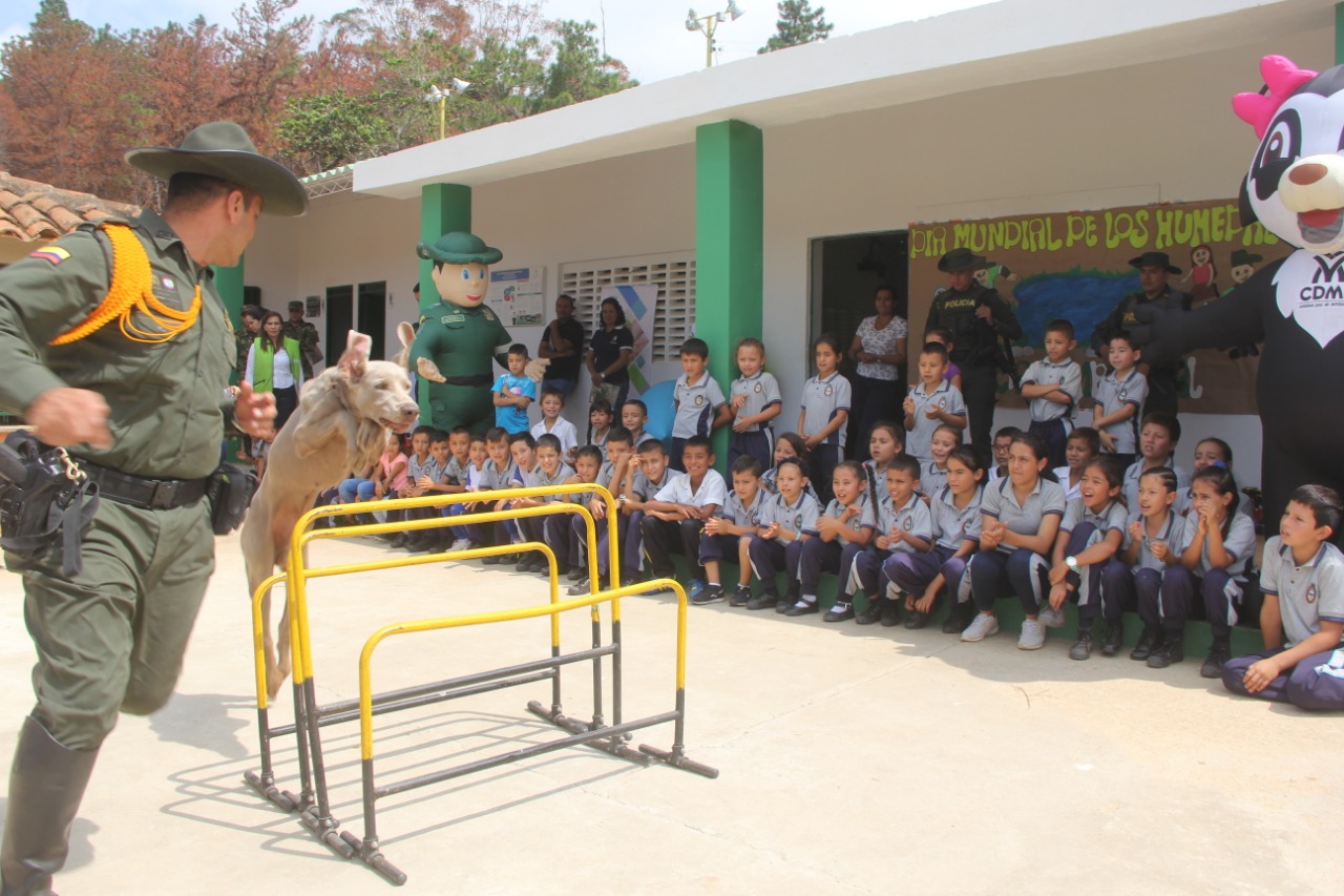 La Policía Nacional realizó la celebración del día mundial de los humedales en el municipio de Girón, con la presencia de las autoridades ambientales y de los niños, niñas y adolescentes de un centro educativo de esta localidad.