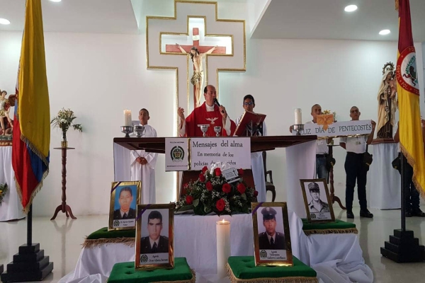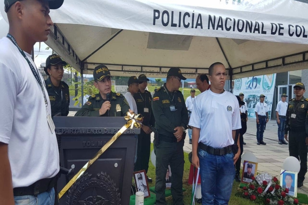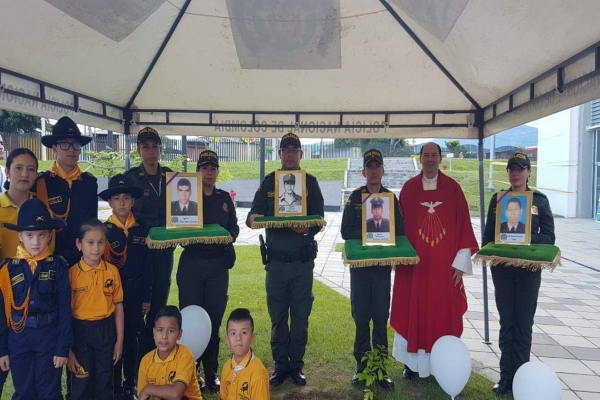 El señor agente Cerrano Olvar Alberto, señor agente Tapiero Lozano Giovanny, señor agente Tabarquino Castañeda Guillermo Antonio y el señor cabo primero España Tovar Marlom donde en el transcurso de la actividad se celebró una eucaristía para posteriormente hacer la ofrenda floral, así como minuto de silencio, culminando la actividad con la bendición de un árbol plantado en el complejo Policial como símbolo de los policías desaparecidos, logrando así generar conciencia en todos los funcionarios uniformados y no uniformados, quienes elevaron una oración por las víctimas.