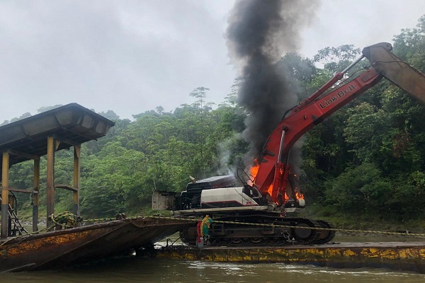 En desarrollo del Plan de Choque, el que la hace paga “Mas Cerca del Ciudadano” y la Estrategia de Intervención Integral Contra la Minería Ilegal el Departamento de Policía Chocó, a través del personal La Seccional de Investigación Criminal Chocó en coordinación con el Ejército Nacional y la Corporación para el Desarrollo Sostenible del Chocó CODECHOCO, fue destruida maquinaría que se dedicaba a la explotación ilícita de yacimientos mineros y contaminación ambiental.