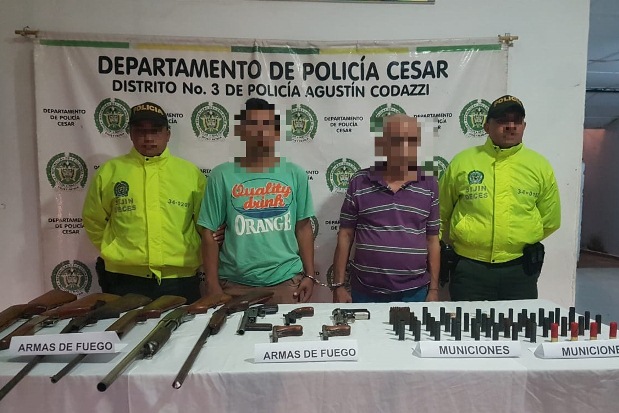El Departamento de Policía de Cesar en desarrollo de la IV fase del plan de choque “el que la hace la paga” “Construyendo Seguridad”, incrementa acciones para incautar armas de fuego ilegales con las cuales se comenten diferentes delitos, es así que mediante diligencia de allanamiento capturó a dos personas y se incautó de siete armas de fuego, una traumática y munición.