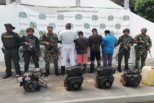 En dicha actividad utilizaban dos minidragas que fueron inutilizadas en el sitio y cuatro motores que fueron incautados y dejados a disposición de Codechoco.