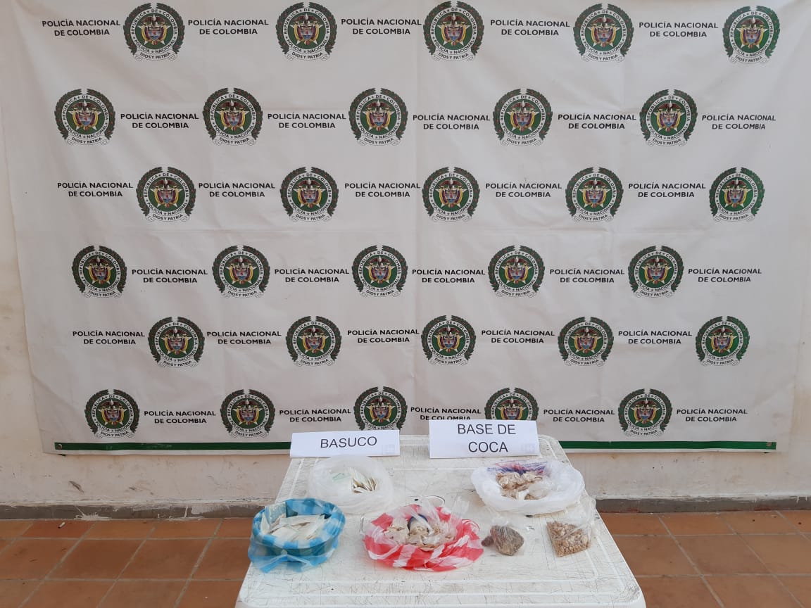 En el procedimiento las autoridades incautaron 200 papeletas de basuco y 160 de base coca, listas para ser comercializadas.