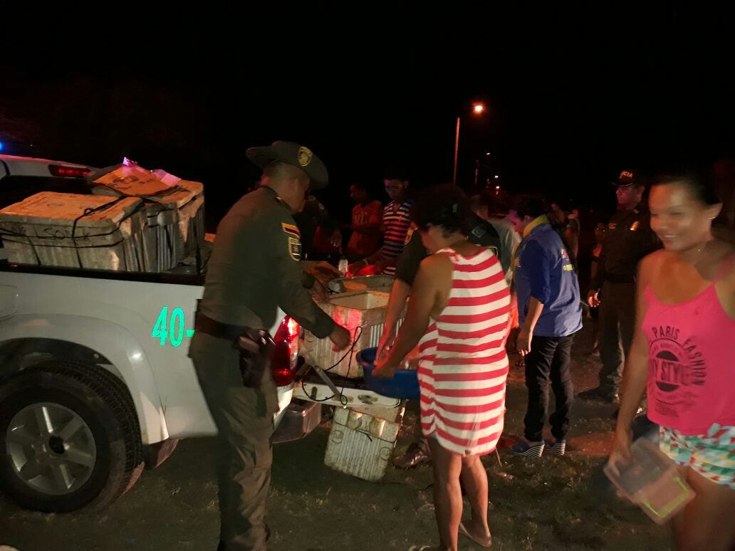 Estos controles fueron realizados en conjunto con la AUNAP; “Autoridad Nacional de Acuicultura y pesca, mediante control de recurso hidrobiológico, la cual se efectuó mediante puesto de disuasión efectuados en la vía que a los municipios de Ayapel con la Apartada, al momento de efectuar la señal de pare a un vehículo tipo camión, al momento de realizarle un registro se encontró en su interior 5.564 unidades de pescado equivalentes a 600 kilos de especies bocachico, moncholo, bagre blanco, pacora, mojarra amarilla avaluadas 2.200.000 pesos y 26 cavas de icopor avaluadas 1.300.000 pesos.