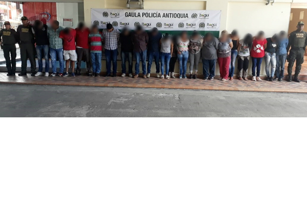 En desarrollo del plan choque, “el que la hace la paga”, navidad segura, más cerca del ciudadano, la Policía Nacional a través del GAULA Antioquia con el apoyo de la Alcaldía de Itagüí, dio captura a 37 personas integrantes del grupo delincuencial “los grilletes”, dedicadas a realizar diferentes extorsiones mediante amenazas, torturas, lesiones y llamadas extorsivas desde el interior de centros penitenciarios y quienes captaban el dinero, externamente, producto de las mismas.