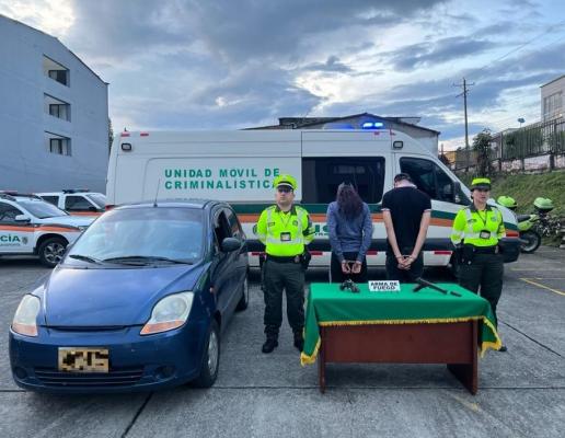 Unidades adscritas a la Seccional de Tránsito y Transporte del departamento del Quindío, logran la captura en flagrancia de una mujer y un hombre, por el delito de fabricación, tráfico, porte o tenencia de armas de fuego, accesorios, partes o municiones.