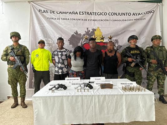 A estas personas se les incautaron dos armas de fuego tipo revolver, 37 cartuchos de diferentes calibres y un proveedor metálico, según las investigaciones adelantadas por las autoridades, los detenidos harían parte del componente orgánico del Grupo Armado Organizado Residual Franco Benavides.