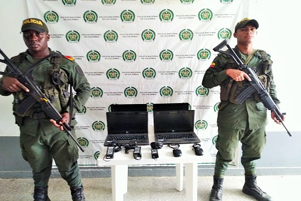 En desarrollo del Plan de Choque, el que la hace paga “más cerca del ciudadano”, el Departamento de Policía Chocó, mediante acciones policiales desplegadas por uniformados adscritos al Modelo Nacional de Vigilancia Comunitaria por Cuadrantes en Bahía Solano, realizaron en las últimas horas la recuperación de 04 computadores portátiles, 03 cargadores o fuentes de poder y 02 mouse.